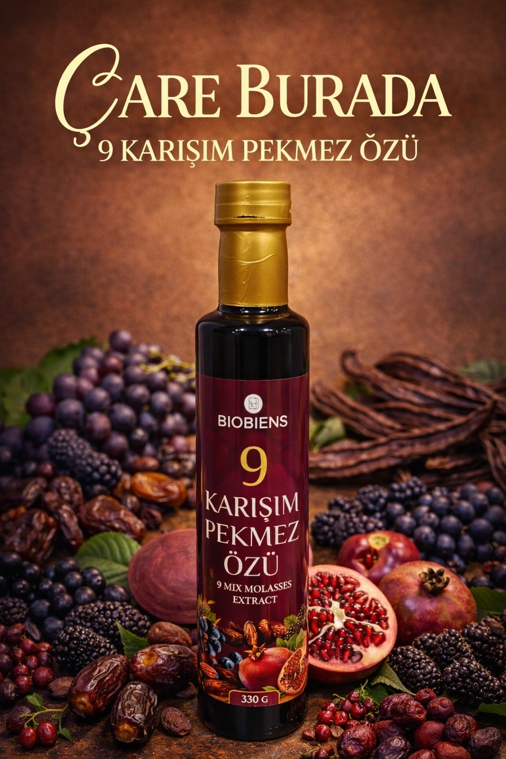 9 Karışım Pekmez Özü 330 Gr (Keçiboynuzu, Üzüm, Karadut, Nar, Kara Üzüm, Hurma, Pancar, Andız, Dut)