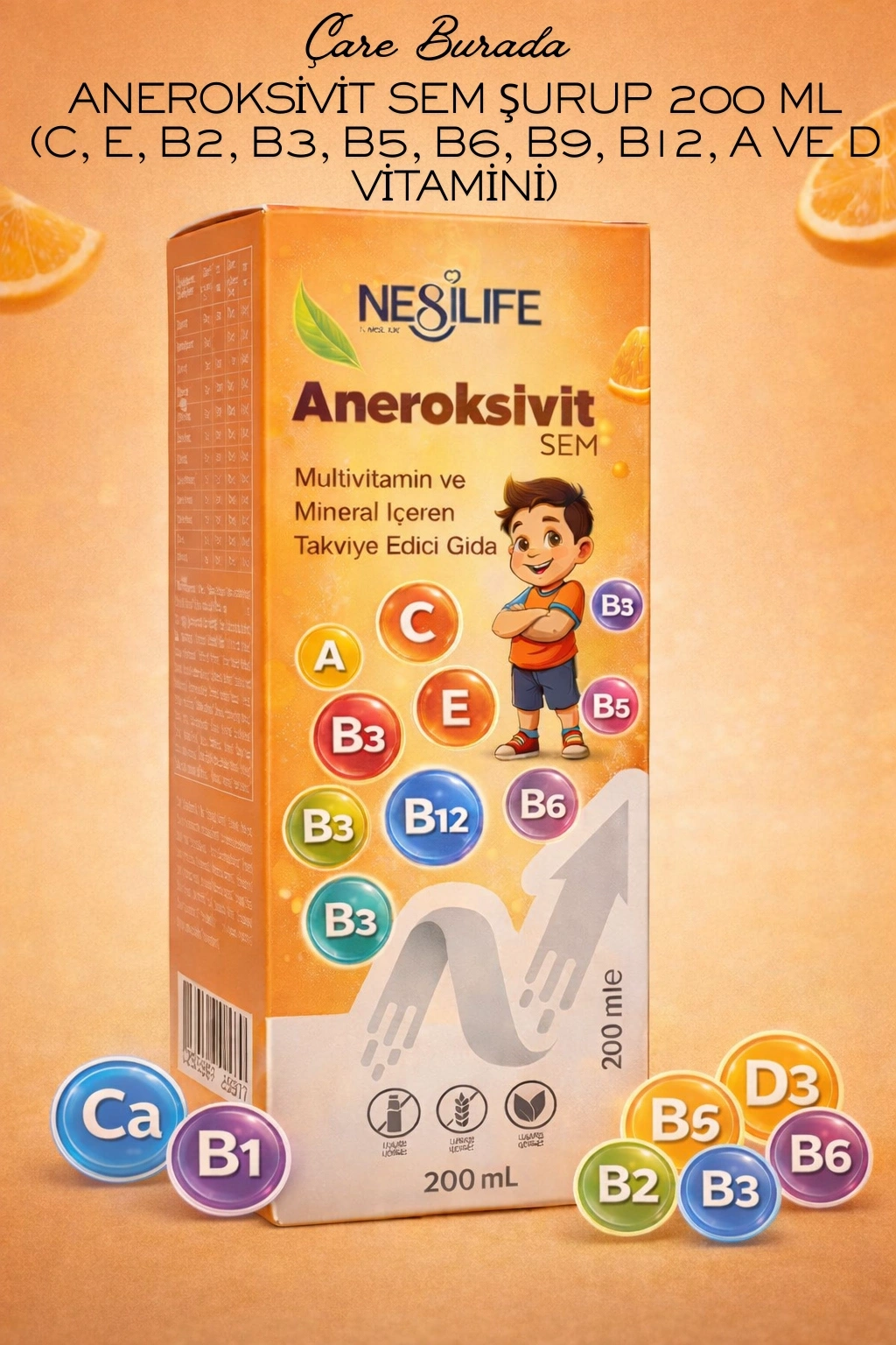 Aneroksivit Sem Şurup 200 Ml (C, E, B1, B2, B3, B5, B6, B9, B12, A ve D Vitamini)