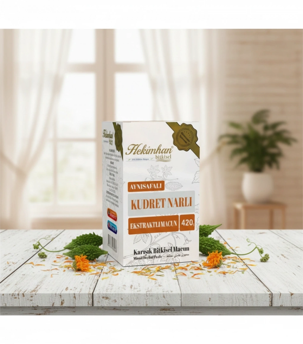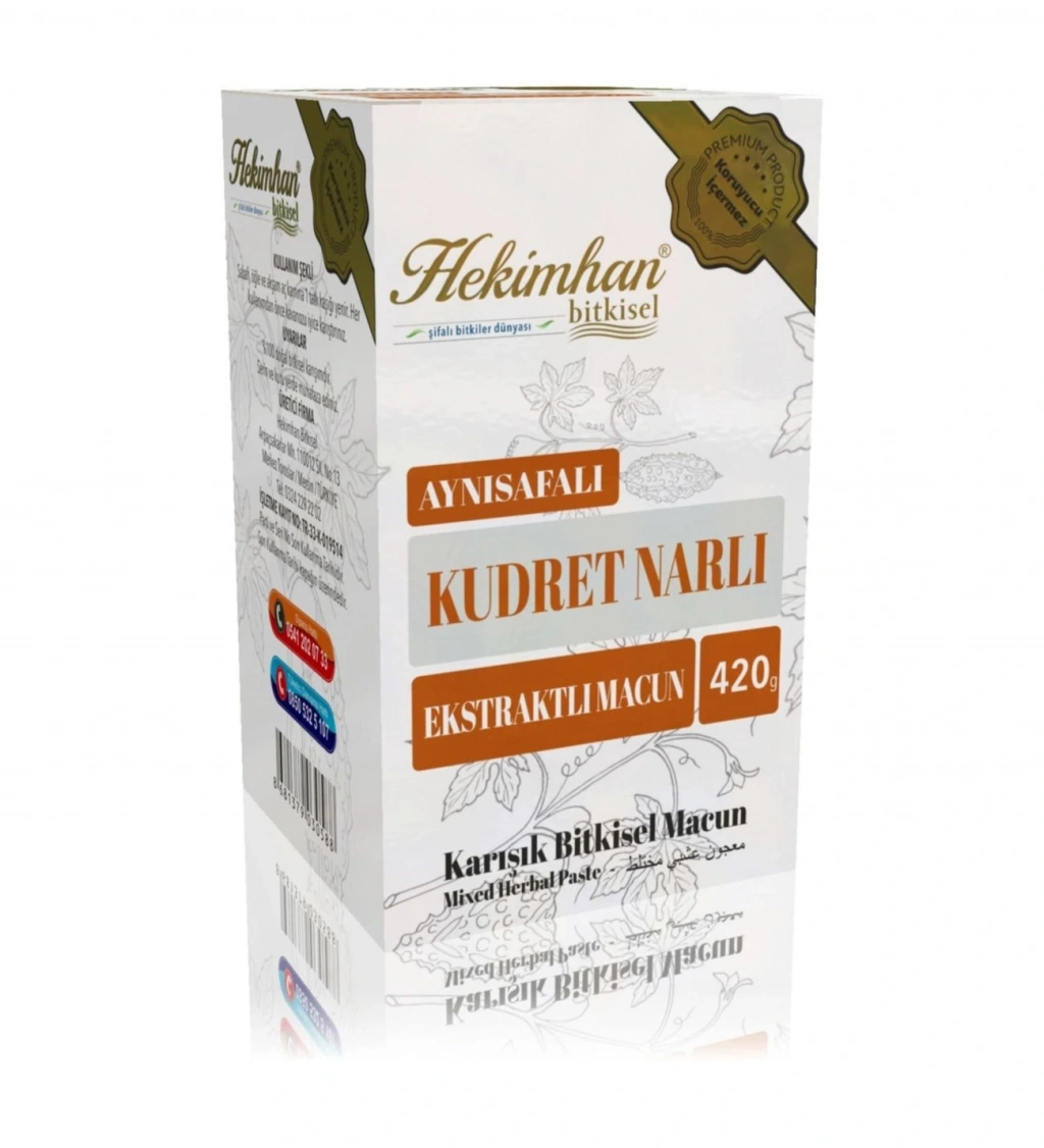 İçindekiler: Kudret nar ekstrakt %1, aynı sefa, kantaron, çörekotu, ısırganotu, adaçayı, hindibağ, keten tohumu, biberiye, bal, şeker şurubu, harnup pekmezi. Serin ve kuru bir yerde muhafaza ediniz. Mide ve sindirim sistemi rahatsızlıklarında geleneksel ve tamamlayıcı tedavi olarak kullanılır.