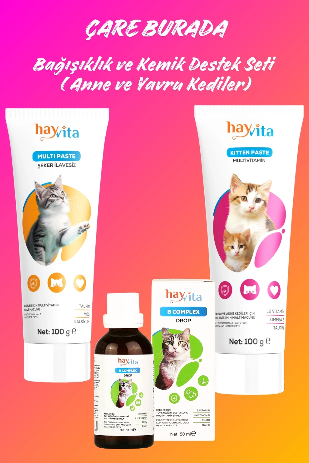 Bağışıklık & Kemik Desteği Seti (Multivitamin Damla ve Multivitamin & Yavru ve Anne Kedi Macunu)