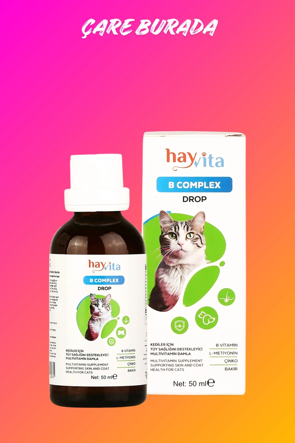 B Complex Vitamin 50ml - Kediler Için Tüy Sağlığını Destekleyici Multivitamin Damla