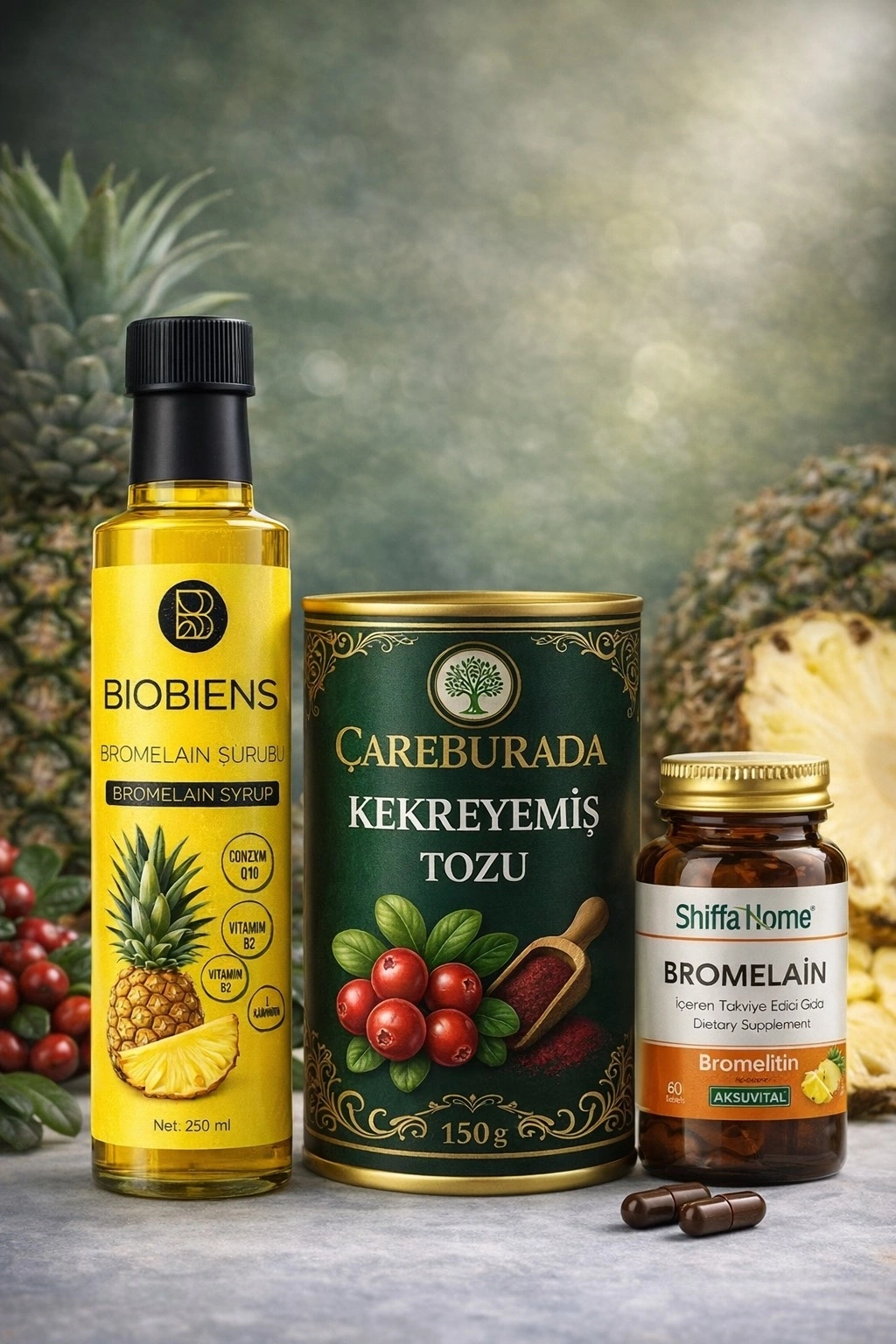 Bromelain Şurup, Kekreyemiş Tozu ve Bromelain Kapsül Seti
