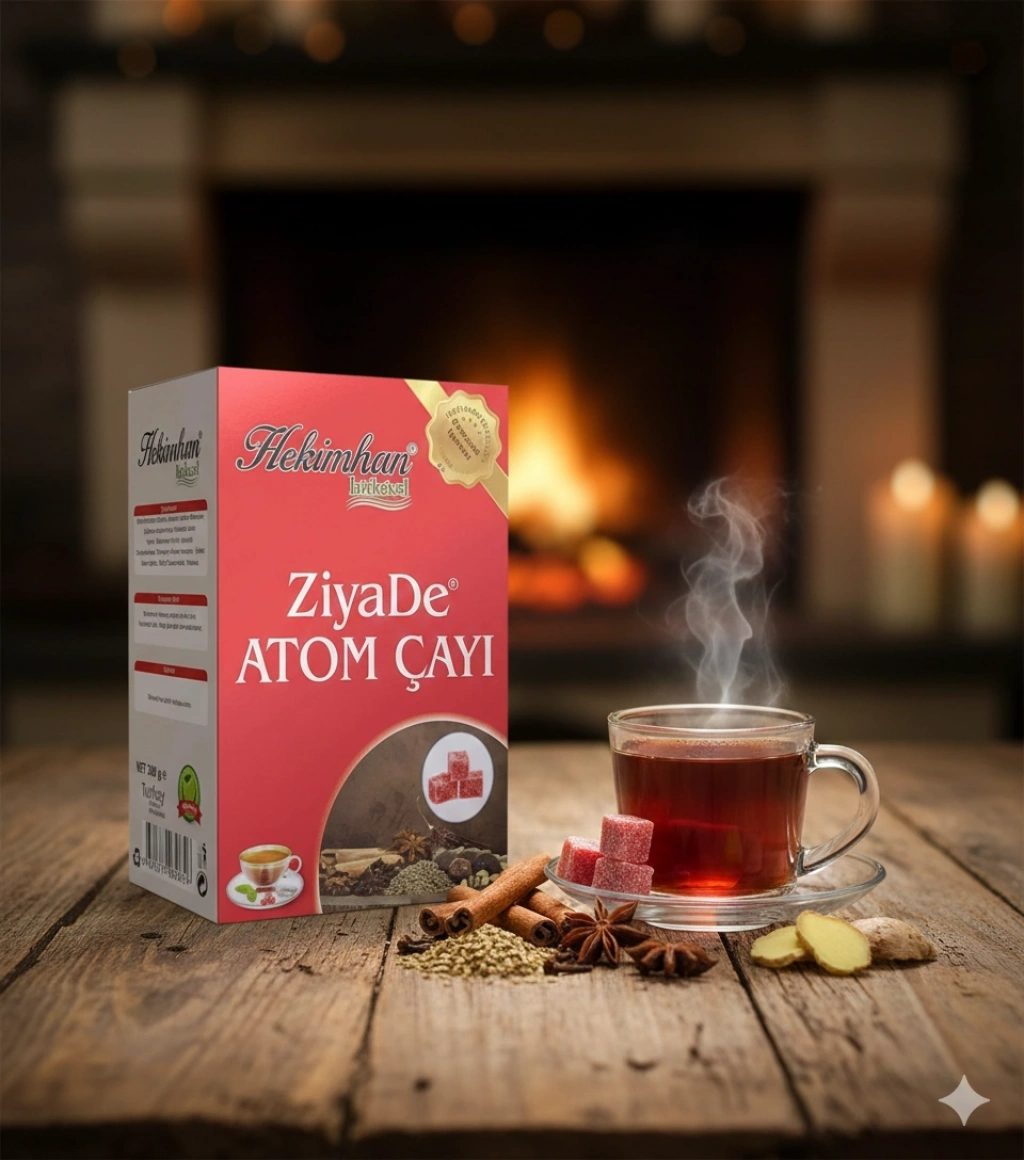 Ziyade Atom Çayı 200 GR. Kullanım Şekli: Kaynamış bir fincan su içerisine iki küp atınız. Karıştırarak içiniz. İsteğe göre şeker ilave edebilirsiniz. Ürün Bileşimi: Zencefil, havlıcan, zerdeçal, karabiber biber, karanfil, yenibahar, şeker, tarçın, hibiscus.