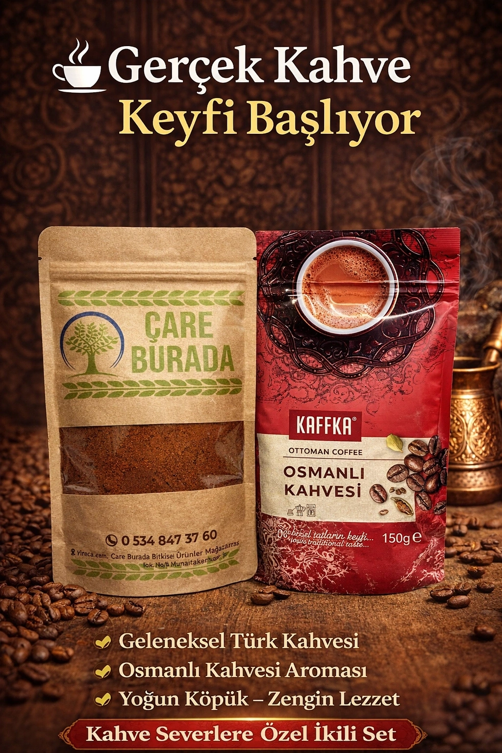 ÇareBurada 150 G Türk Kahvesi + Kaffka Osmanlı Kahvesi 150 G