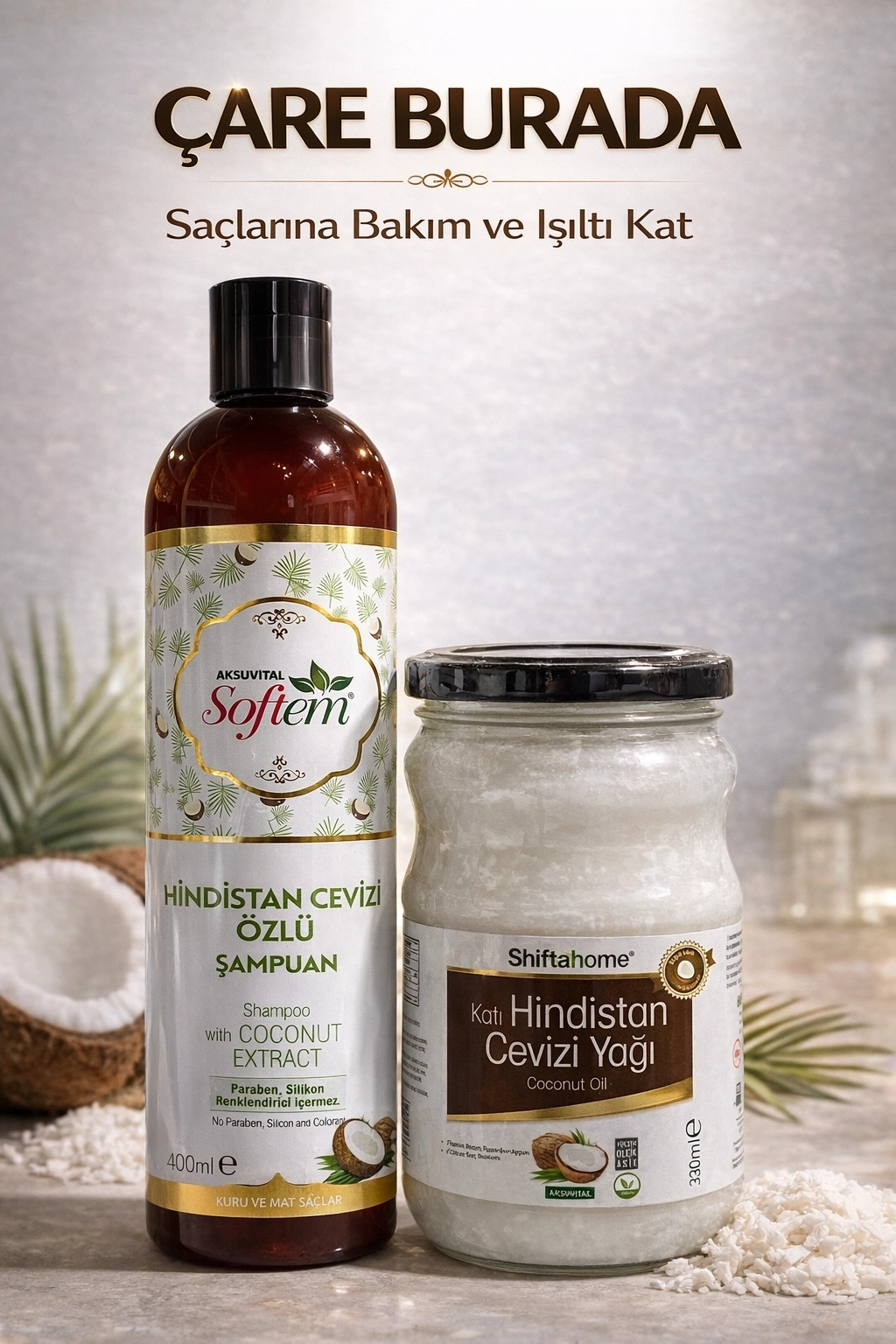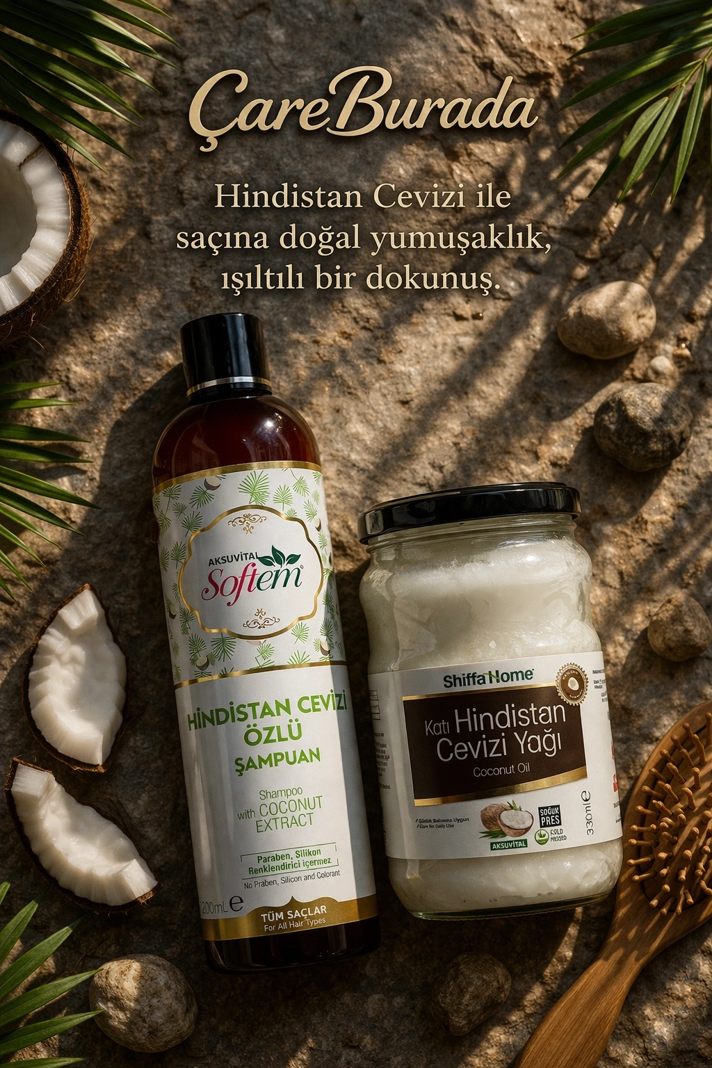 ÇareBurada Hindistan Cevizi Özlü Şampuan 400 ml + Katı Hindistan Cevizi Yağı 330 ml
