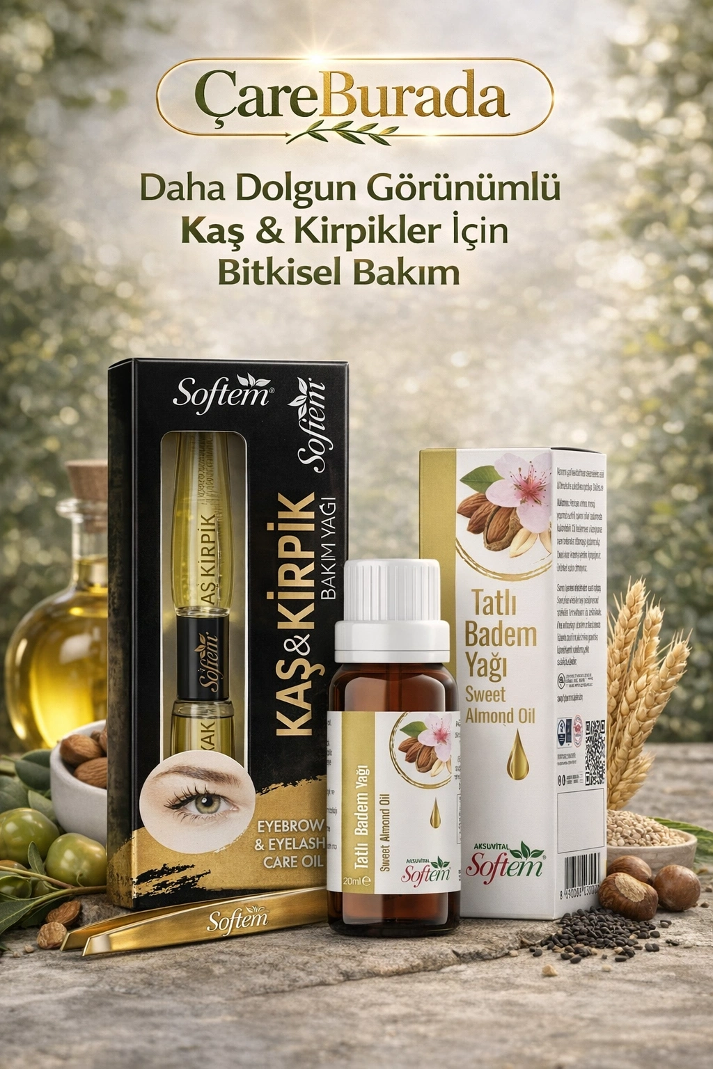 ÇareBurada Kaş&Kirpik Bakım Yağı 20 ml. + Tatlı Badem Yağı 20 ml. | Kaş Kirpik Bakım Seti