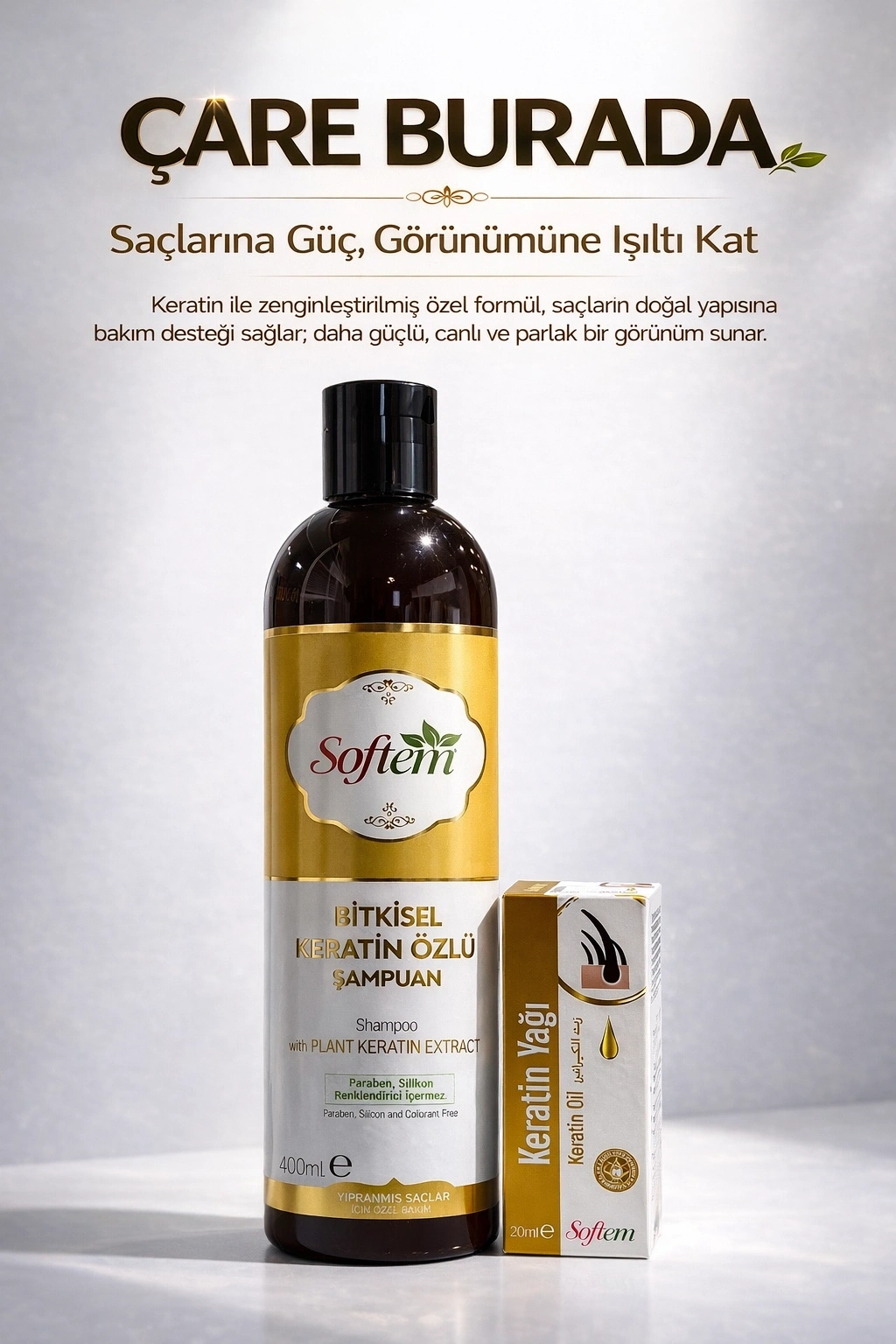 ÇareBurada Keratin Özlü Şampuan 400 ml + Keratin Yağı 20 ml
