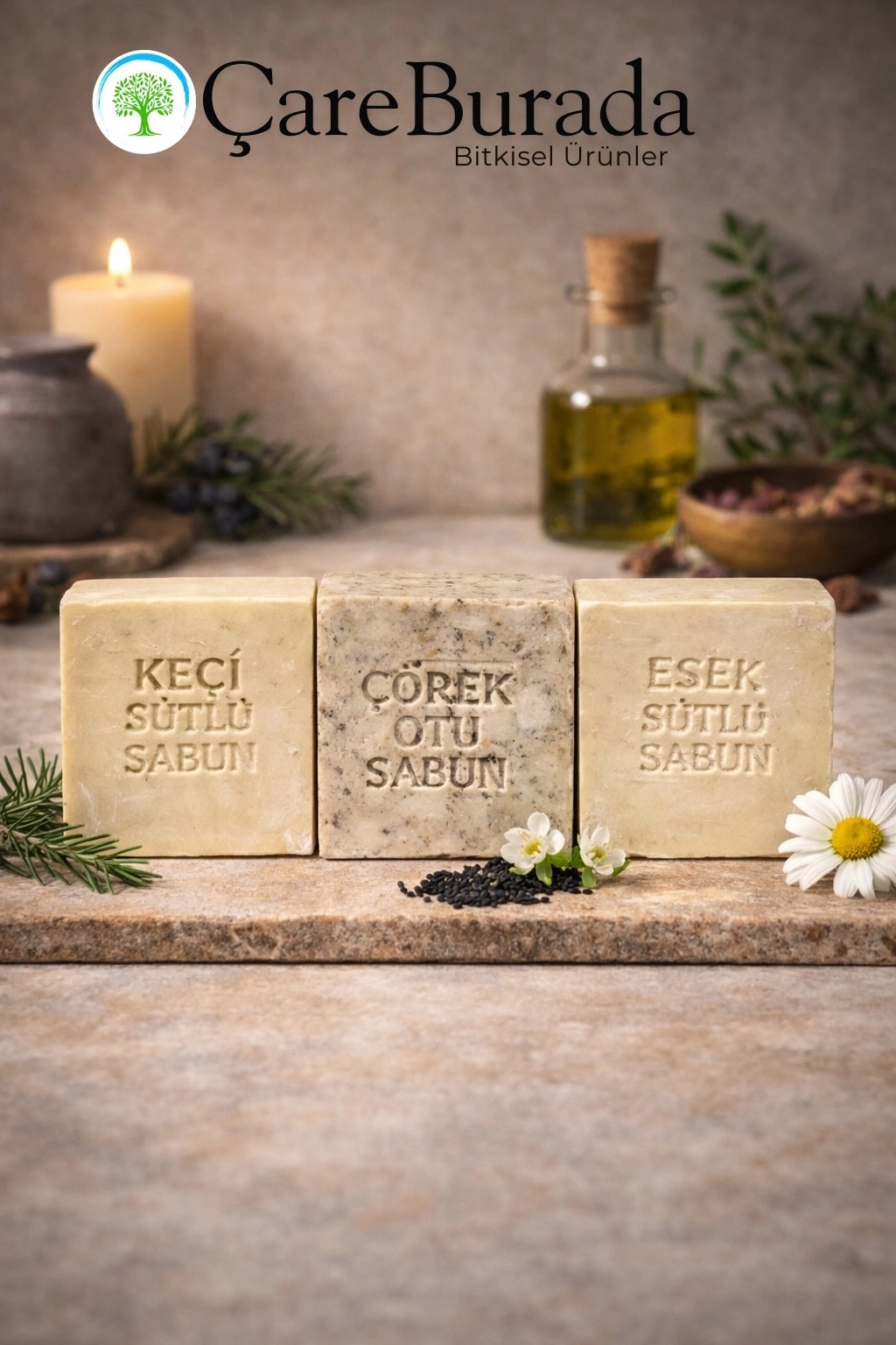 ÇareBurada Sabun Seti 3'lü - Keçi Sütlü & Çörek Otu & Eşek Sütlü