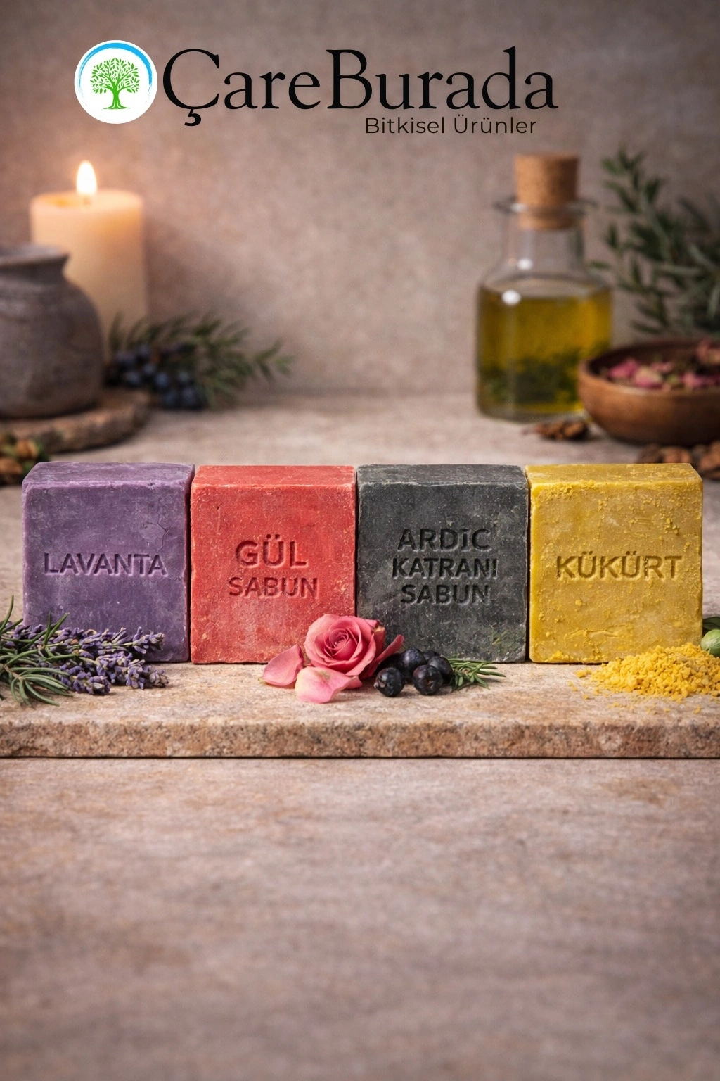 ÇareBurada Sabun Seti 4'lü - Lavanta & Gül & Ardıç Katranı & Kükürt
