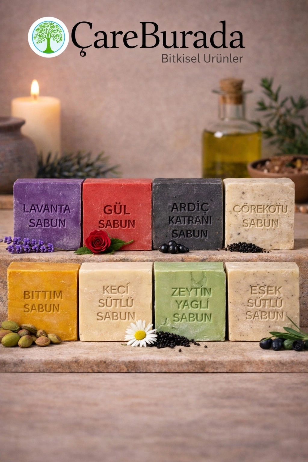 ÇareBurada Sabun Seti 8'li - Lavanta & Gül & Ardıç Katranı & Çörekotu & Bıttım & Keçi Sütlü & Zeytin Yağlı & Eşek Sütlü