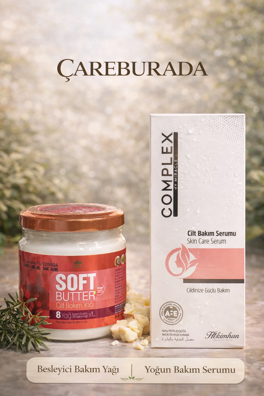 ÇareBurada Soft Butter Cilt Bakım Yağı 190 ml. & Complex Cilt Bakım Serumu 125 ml. Cilt Bakım Seti