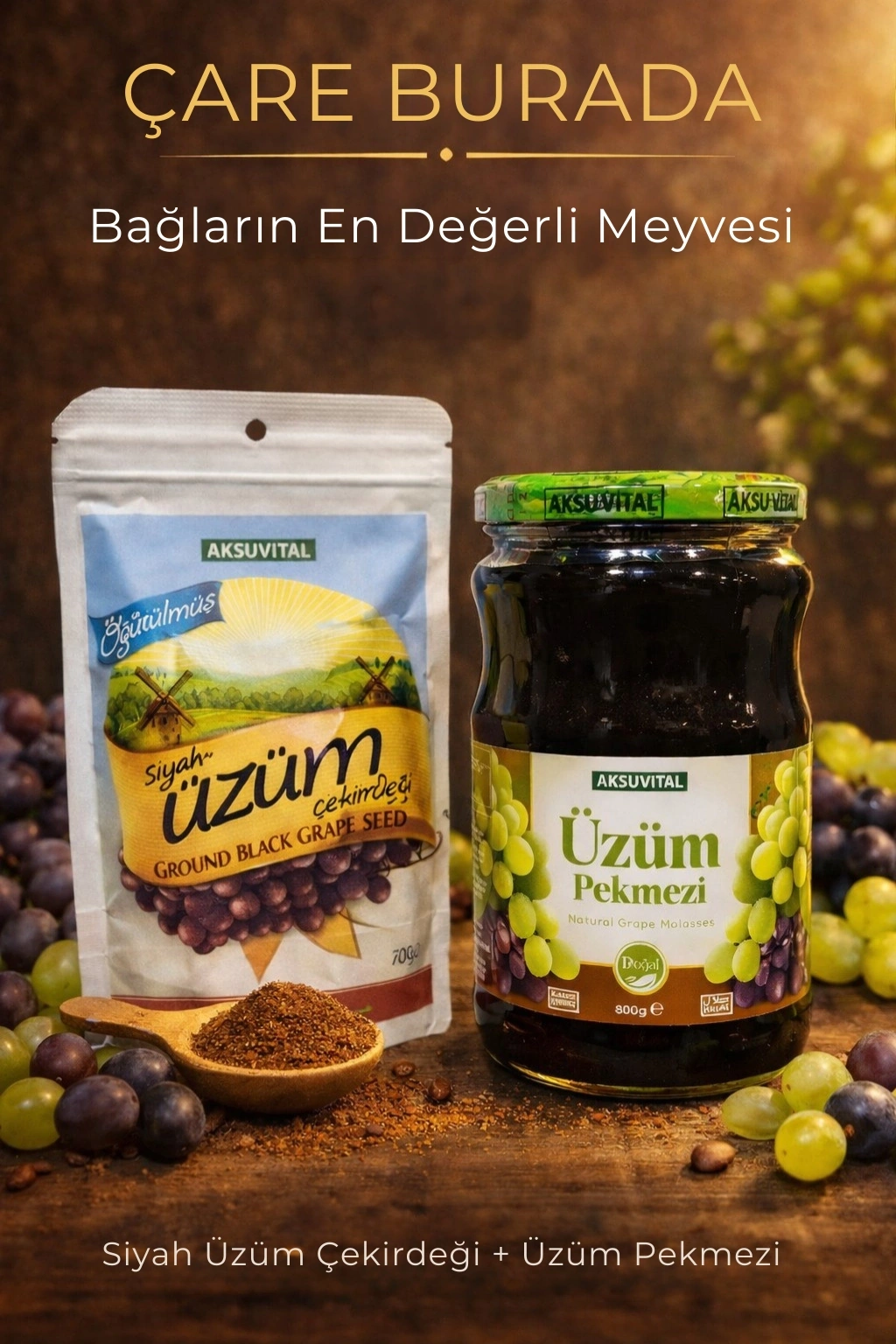 ÇareBurada Vital Üzüm Pekmezi 800 g + Öğütülmüş Siyah Üzüm Çekirdeği 100 g