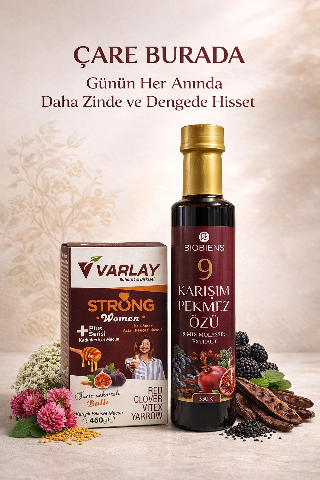ÇareBurada WMN Set - Strong Women Macun 450 g + 9 Karışım Pekmez Özü 330 ml