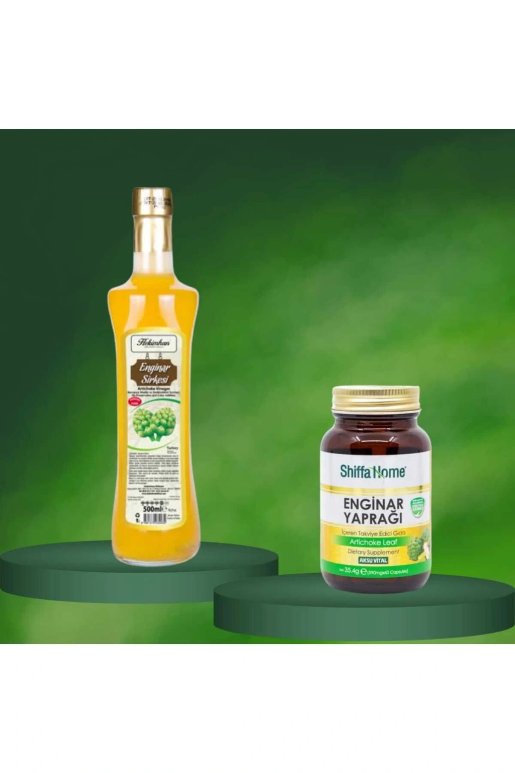 - Enginar yaprağı özü içeren kapsüller, günlük takviye olarak tüketilebilir ve sindirim sistemini destekler. - Bitkisel aroması ile doğal bir lezzet sunan enginar sirkeli içecek, ferahlatıcı bir içecek alternatifi olarak öne çıkar. - Her pakette 60 adet kapsül ve 500 ml enginar sirkesi bulunur, böylece uzun süreli kullanım için yeterli miktarda ürün sunar. - Set içeriğinde 2 adet ürün yer alır; böylece hem kapsüller hem de enginar sirkesi tek pakette bir arada sunulur.