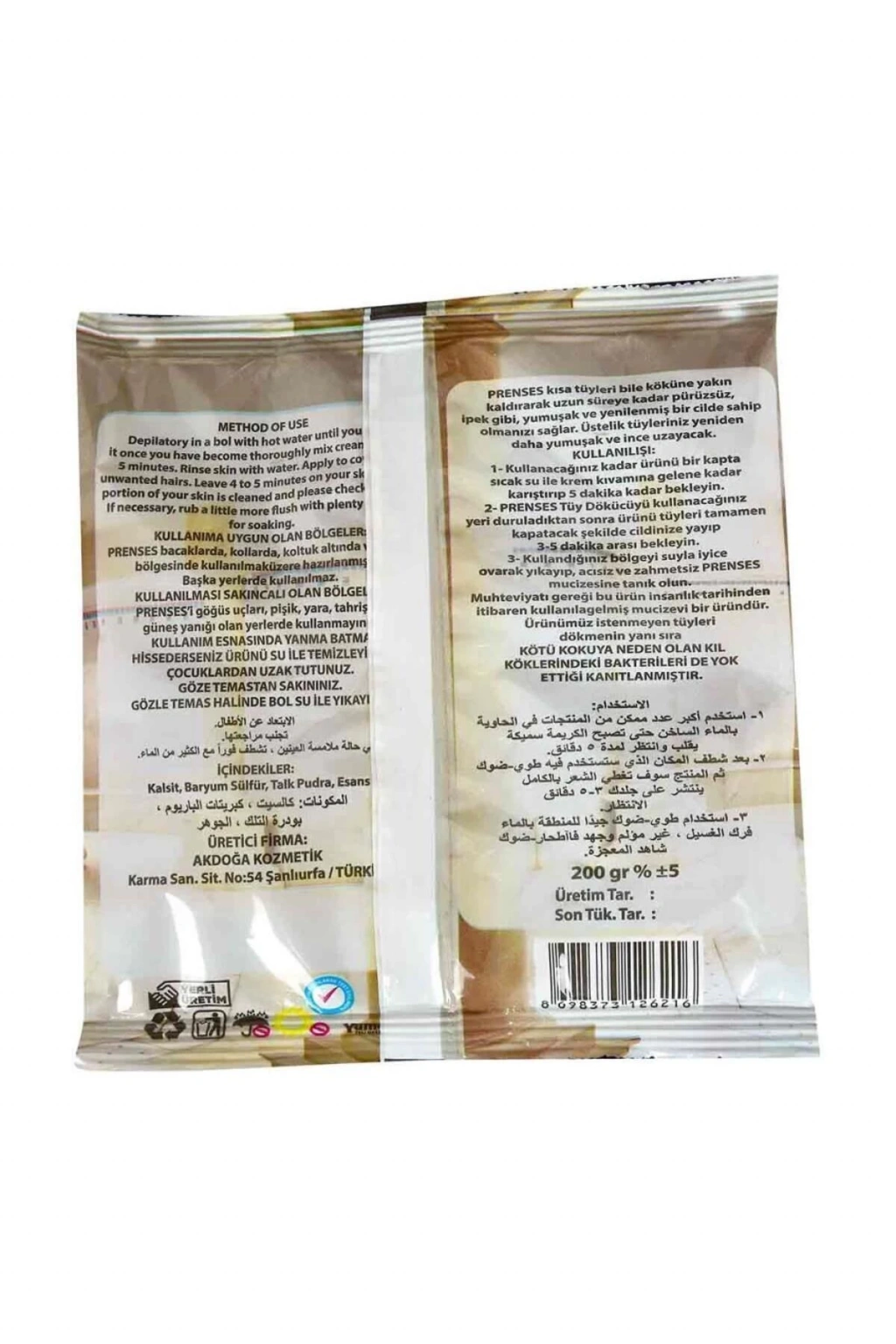 1966'dan günümüze dededen toruna güleryüzlü hizmet ; Şeref kuden... ; Ambalajı açılan ürünlerin iadesi yapılmamaktadır. ; Prenses tüy dökücü toz hamam otu: Tüy dökücü toz hamam otu kullanılışı ; Ihtiyacınız kadar olan ürünü bir kapta sıcak su ile iyice karıştırınız, krem haline getirdikten sonra 5 dk. Dinlendiriniz. ; Uygulanacak bölgeyi su ile duruladıktan sonra tüyleri tamamen kapatacak şekilde sürünüz. ; Cilt üzerinde 4 - 5 dk. Beklettikten sonra bol su ile ovarak yıkayınız. ; Acısız ve zahmetsiz tüy - Dök mucizesine tanık olunuz. ; Ürün istenmeyen tüyleri dökmenin yanı sıra kötü kokuya neden olan bakterileride yok ettiği kanıtlanmıştır. ;