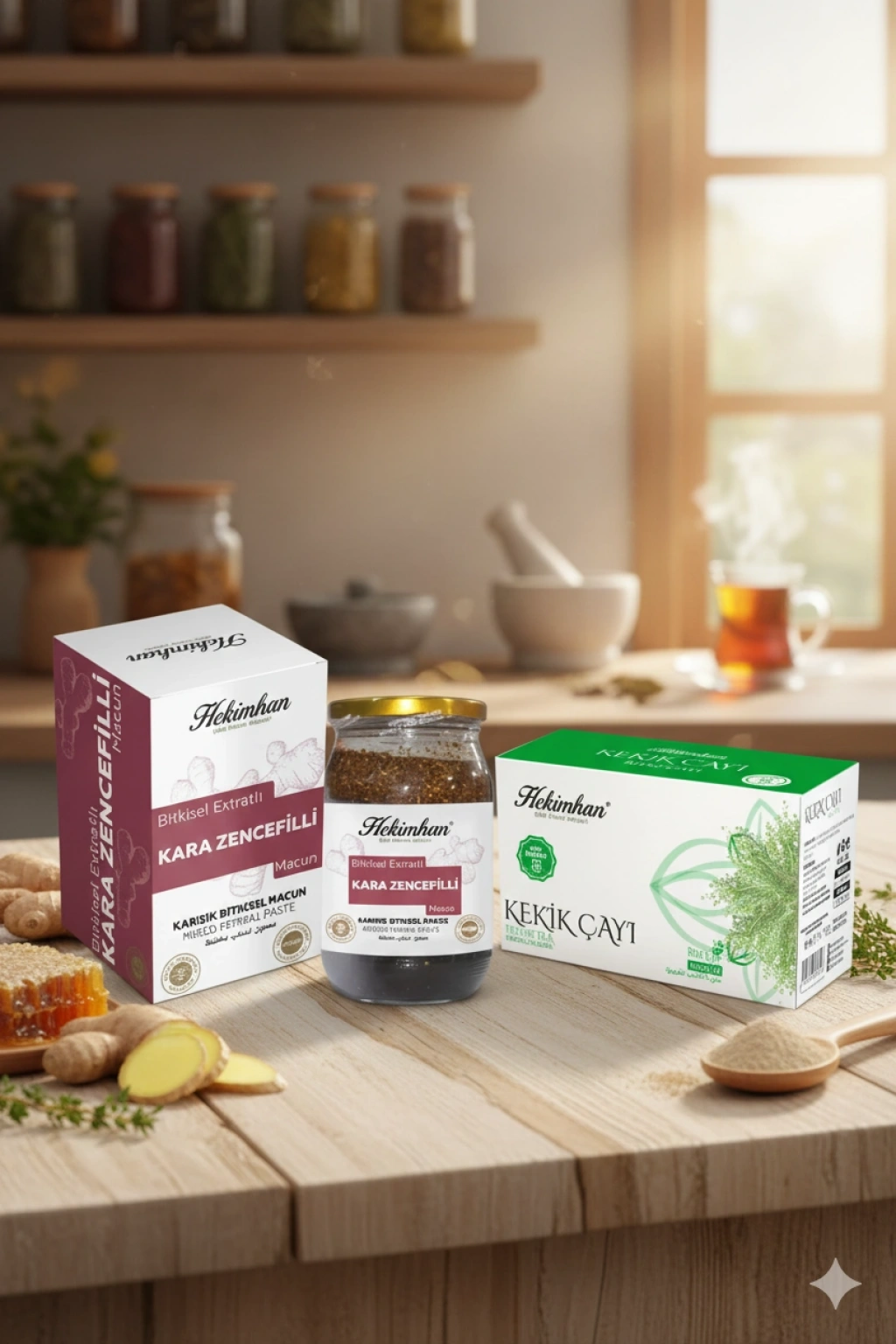 Hekimhan Bitkisel Kara Zencefilli Macun + Kekik Çayı