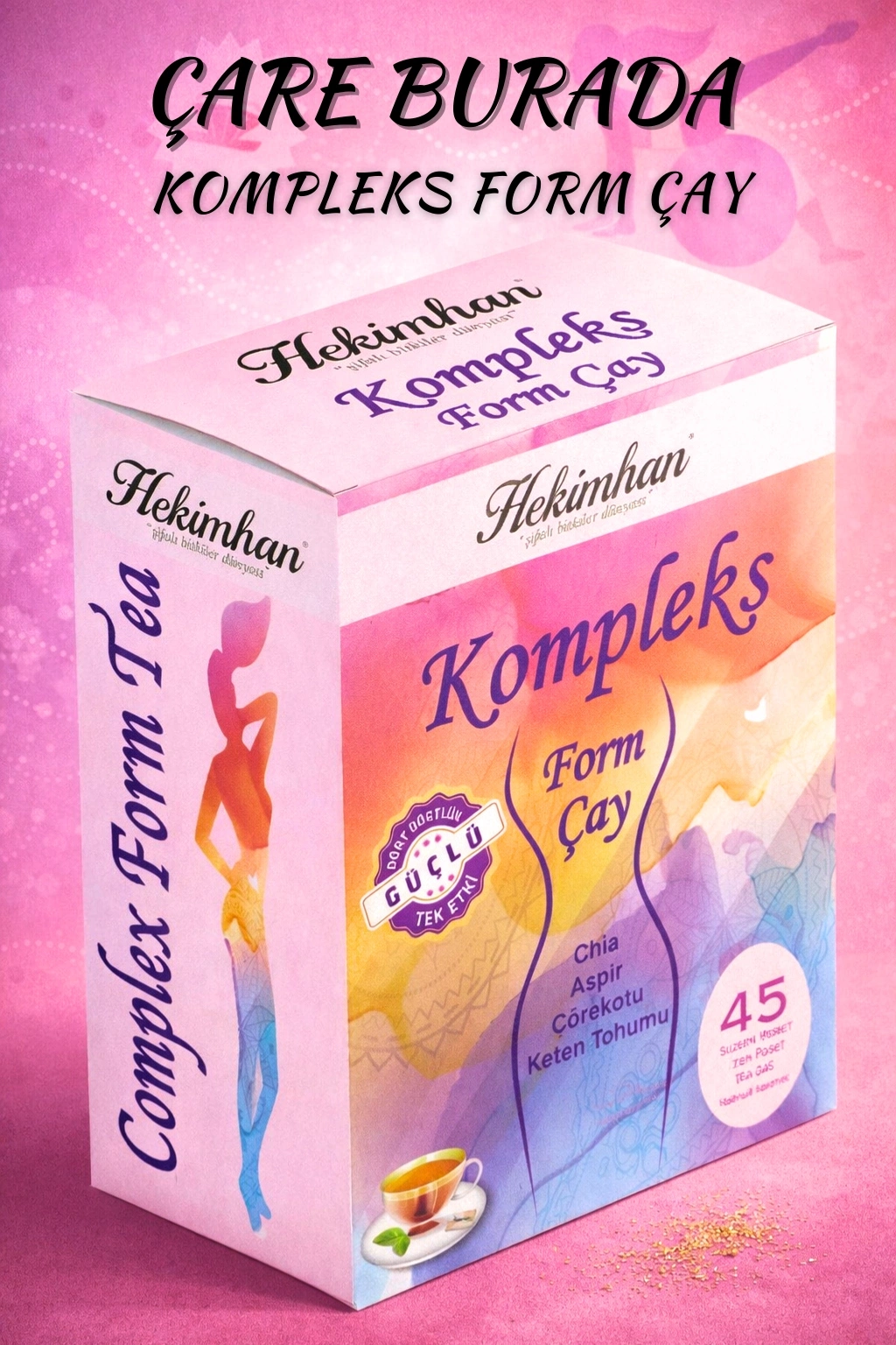 Hekimhan Şifalı Bitkiler Dünyası ; Complex Form Tea ; İçindekiler: Chia, Aspir, Çörekotu, Keten tohumu ; 45 süzen poşet ; Kullanımı: 1 fincan kaynar suya 1 süzen poşet çay, daldırıp demleyiniz. demleme süresi 2 dakikadan az 6 dakikadan fazla olmamalıdır;