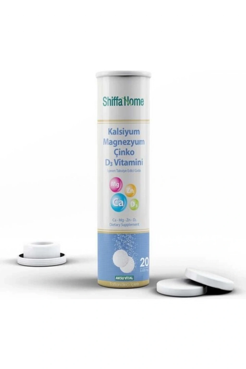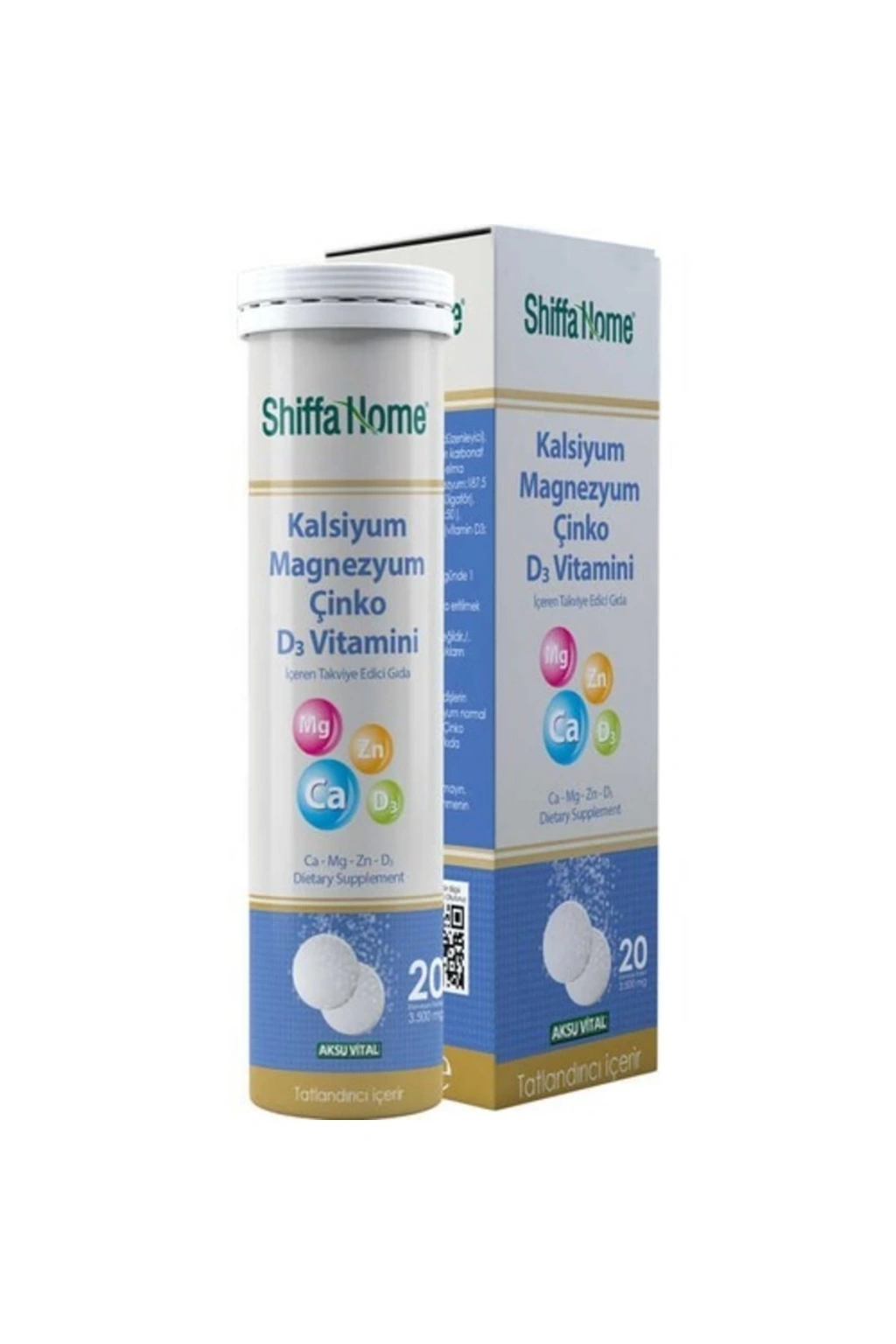 CA; MG; ZN; D3 EFERVESAN KALSİYUM; MAGNEZYUM; ÇİNKO; D3 VİTAMİNİ Kalsiyum & Magnezyum & Çinko & D3 Vitamini Nedir? Shiffa Home Kalsiyum, Magnezyum, Çinko ve D3 vitamini içeren doğal ürünlerin yüksek teknolojiyle bir araya getirildiği, sizi daima güçlü hissettirecek besin değeri yüksek gıda takviyesidir; Doğal ürünler insan kimyasıyla tam uyumu sebebiyle sağlıklı yaşamın anahtarıdır; 1989’dan günümüze Türkiye’nin gıda takviyesi üreticisi AksuVital, özenle temin ettiği kaliteli hammaddeler ile Ar; ge merkezinde etkinliği ve faydası maksimum seviyede ürünler geliştirmektedir; Kalsiyum & Magnezyum & Çinko & D3 Vitamini Faydaları Nelerdir? Mineraller vücudun kendi kendine oluşturamadığı inorganik maddelerdir; İyi yaşamak, iyi yaşlanmak ve iyi bir vücut yapısı için gereklidir; Shiffa Home ürettiği ürünlerdeki yüksek kalite standartlarıyla Türkiye’nin en prestijli doğal ürünler markası hedefiyle bilimsel ve geleneksel çalışmaları son teknolojiyle birleştirmektedir; Doğaya zarar vermeden üretim yapmaya, üretimin her aşamasında dikkat ediliyor; Geri dönüşümlü ve ürünün ışıktan etkilenmesini engelleyecek amber renkli cam şişeler kullanılıyor; Ürünlerde Helal sertifikalı bitkisel kapsüller ve sığır jelatini menşeili softjeller kullanılıyor; Kalsiyum & Magnezyum & Çinko & D3 Vitamini İçeriği Kalsiyum, normal kemiklerin ve dişlerin korunmasına katkıda bulunur; D vitamini ve Kalsiyum çocukların kemiklerinin normal gelişmesi ve büyümesi için gereklidir; Kalsiyum normal kas fonksiyonuna, normal enerji oluşum metabolizmasına ve sindirim enzimlerinin normal fonksiyonuna katkıda bulunur; Kalsiyumun hücre bölünmesinde ve özelleşmesi sürecinde görevi vardır; Magnezyum, yorgunluğun ve bitkinliğin azalmasına, elektrolit dengesine, normal enerji oluşum metabolizmasına, normal protein sentezine, normal kemiklerin korunmasına, normal dişlerin korunmasına katkıda bulunur; Ayrıca magnezyumun hücre bölünmesinde görevi vardır; Çinko, normal kemiklerin korunmasına, normal görme yetisinin korunmasına, DNA sentezine, protein sentezine, yağ asitlerinin metabolizmasına, saçın, cildin ve tırnakların korunmasına, bağışıklık sisteminin normal fonksiyonuna katkıda bulunur; D Vitamini, normal dişlerin, normal kemiklerin korunması için gereklidir; D vitamini çocuklarda normal kemik gelişimi ve büyüme için önemli ve gereklidir; D vitaminin hücre bölünmesinde görevi vardır; D vitamini bağışıklık sisteminin normal fonksiyonuna, normal kas fonksiyonunun korunmasına, normal dişlerin korunmasına, normal kemiklerin korunmasına, normal kan kalsiyum düzeyine, kalsiyumun ve fosforun normal emilimine/kullanımına katkıda bulunur; İçerisinde bulunan mineraller hücre korunması, sağlıklı diş, kemik, cilt yapısı için önemlidir; İçerik 1 Tablette: Sitrik Asit (asitlik düzenleyici),sodyum bikarbonat (E500),kalsiyum karbonat (kalsiyum:200 mg: %BRD:25),yeşil elma aroması, Magnezyum oksit (magnezyum:187,5 mg %BRD:50) polietilen glikol(emülgatör),çinko glukonat (çinko:5 mg %BRD:50),sukraloz(tatlandırıcı),kolekalsiferol (vitamin D3: 5 mcg %BRD:100) Kalsiyum & Magnezyum & Çinko & D3 Vitamini Kullanım Önerisi 11 yaş üstü yetişkinler için günde 1 kez 1 tablet alınmalıdır; Tercihen yemeklerden sonra tercih edilir; Her bir tablet 1 bardak (200ml) suda eritilerek tüketilir; İçeriğindeki ekstrelerden dolayı partikül oluşturabilir ve köpürme yapabilir; Doğal bir olay olup, bozulma değildir; İşletme Kayıt No: TR – 34 K 048026; GIDA ONAY NUMARASI: 003175; 19; 09; 2017 Ambalaj: 20 Tablet ISO 22000:2005 kalite standartlarına uygundur, GDO içermez, Silikon içermez, Renklendirici içermez, Kaliteli, yüksek etken madde kullanılarak üretilir;