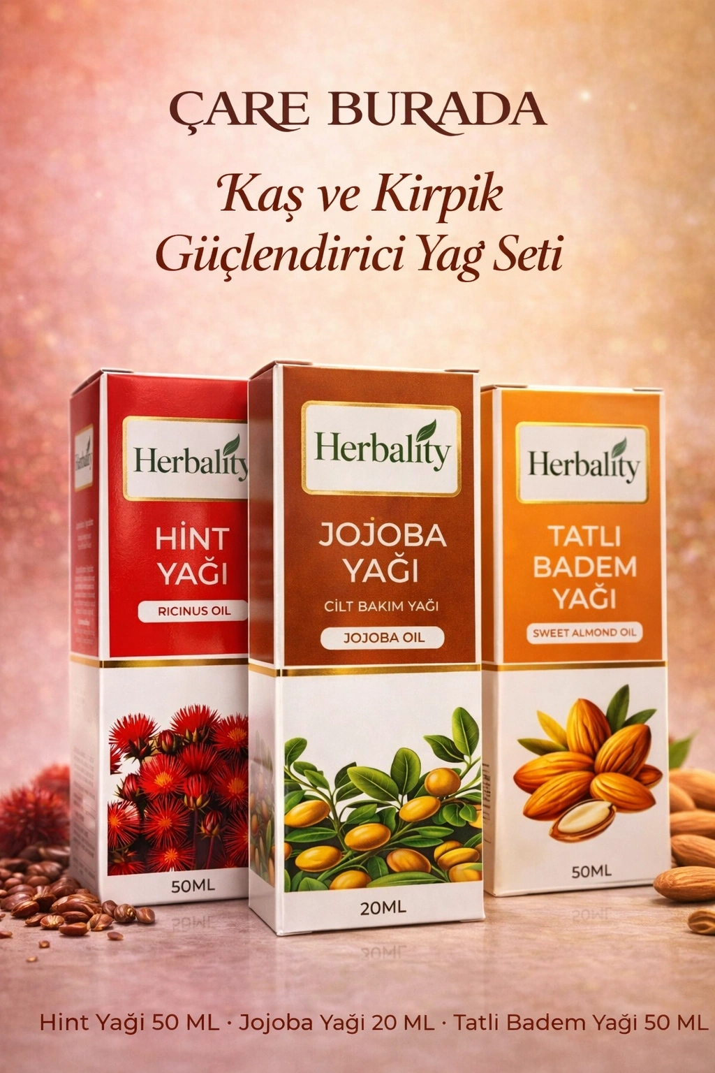 Kaş ve Kirpik Destekleyici Yağ Seti (Hint Yağı & Jojoba Yağı & Tatlı Badem Yağı)