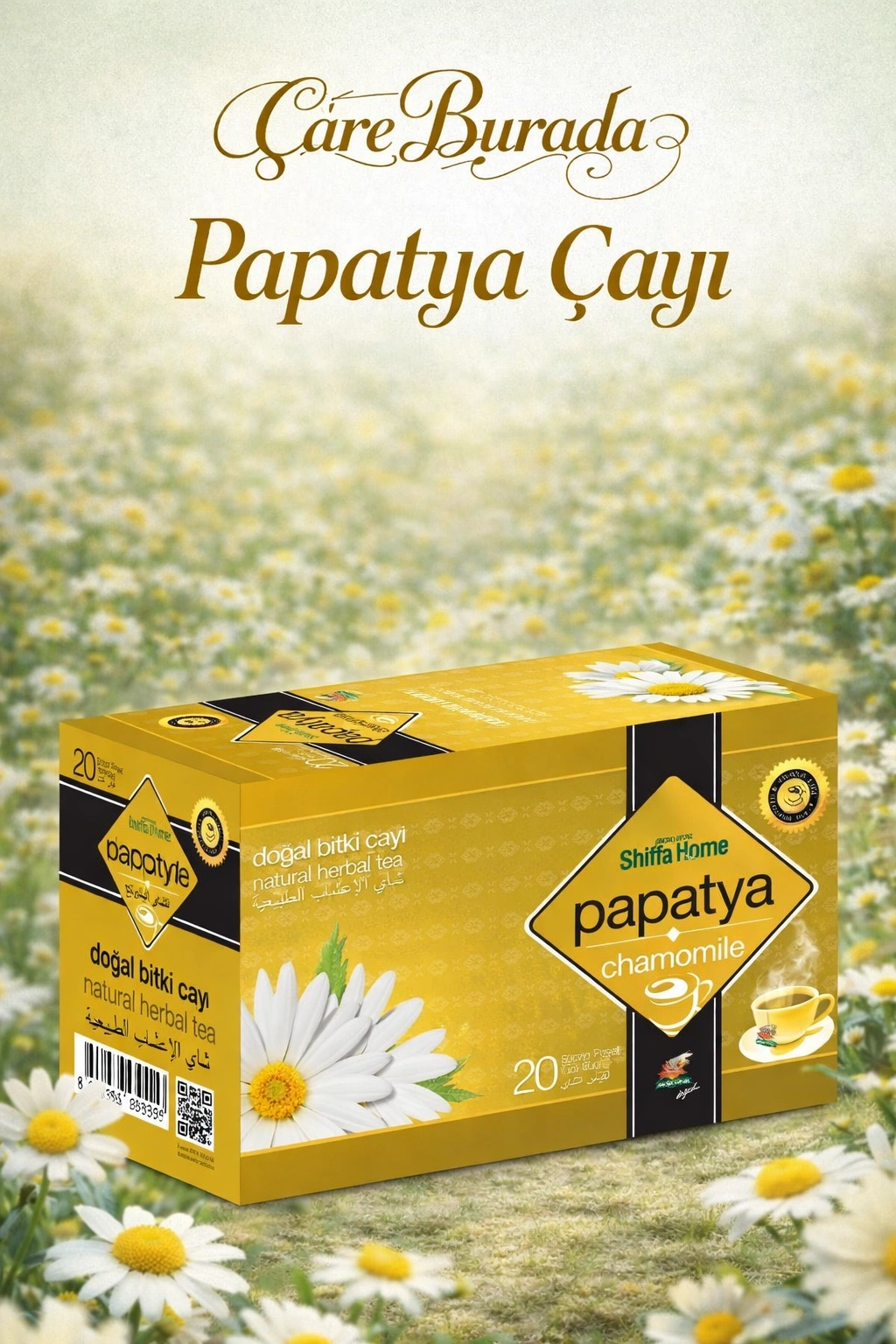 Papatyanın toprak üstü çiçeklerinden özenle toplanarak üretilen Shiffa Home papatya çayı, içeriğinde nikotinik asit, salisilik asit, karoten, C vitamini, palmitinik, stearinik ve linoleik asit glikozitleri gibi önemli etken maddeler bulundurmaktadır.