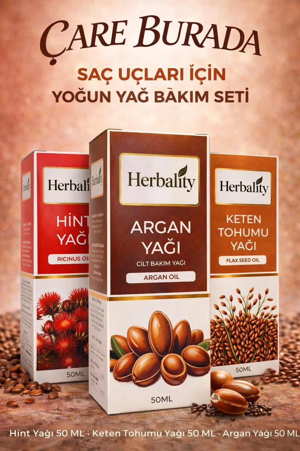 Saç Uçları İçin Yoğun Yağ Bakım Seti (Hint Yağı & Argan Yağı & Keten Tohumu Yağı)