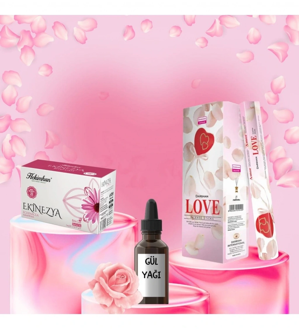Sevgi Seti Love Tütsü 20 Çubuk + Gül Yağı 20 ml + Ekinezya Çayı 20 Poşet