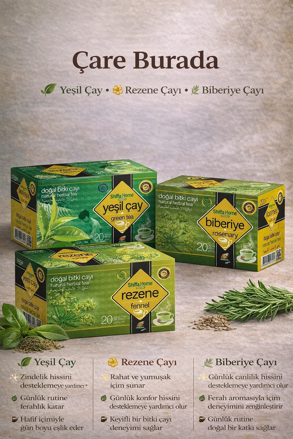 Sindirim Rahatlatıcı Çay Seti (Rezene 20'li & Biberiye 20'li & Yeşil Çay 20'li)