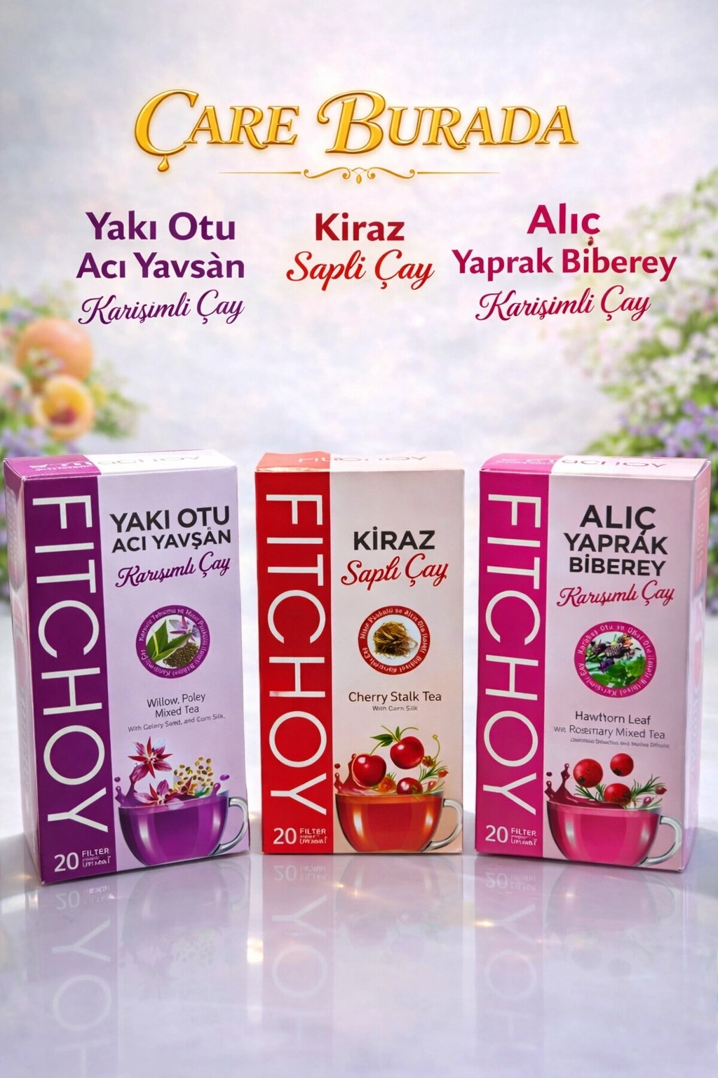 Şişkinlik Hafifletici Çay Seti (Kiraz Sapı Çayı 45'li & Alıç - Biberiye Çayı 45'li & Acı Yavşan - Yakı Otu Çayı 45'li)
