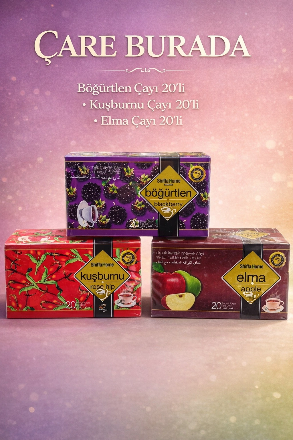 Tatlı ve Keyifli İçim Çay Seti (Böğürtlen Çayı 20'li & Elma Çayı 20'li & Kuşburnu Çayı 20'li)