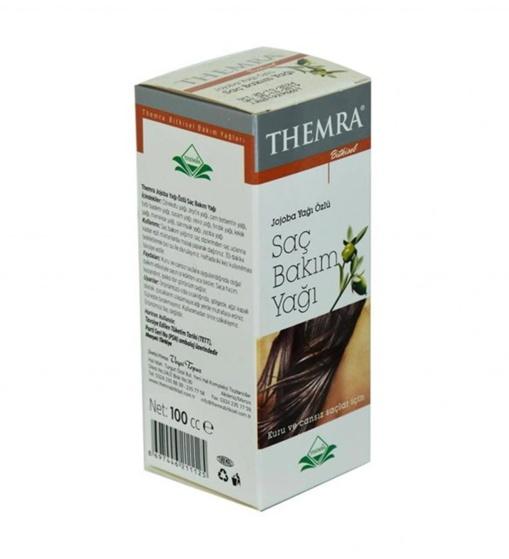 THEMRA JOJOBA YAĞI ÖZLÜ KURU VE CANSIZ SAÇLARA BAKIM YAĞI 100 CC Themra Bitkisel Jojoba Yağı Özlü Kuru ve Cansız Saçlara Bakım Yağı Miktar - Birim - Ebat - Ağırlık - Ölçü: Themra Bitkisel Jojoba Yağı Özlü Kuru ve Cansız Saçlara Bakım Yağı 100 cc Themra Bitkisel Jojoba Yağı Özlü Kuru ve Cansız Saçlara Bakım Yağı 100 cc İzin Belge - Menşei: Bitkisel Jojoba Yağı Özlü Kuru ve Cansız Saçlara Bakım Yağı 100 cc ürünü Veysi Topuz tarafından üretilmiştir. Menşei: Türkiye - Yerli Üretim Themra Bitkisel Jojoba Yağı Özlü Kuru ve Cansız Saçlara Bakım Yağı 100 cc İçindekiler: Bitkisel Jojoba Yağı Özlü Kuru ve Cansız Saçlara Bakım Yağı 100 cc ürünü içerisinde; çörek otu yağı, zeytin yağı, çam terebentin yağı, tatlı badem yağı, susam yağı, ceviz yağı, fındık yağı, kekik yağı, menekşe yağı, sarımsak yağı, jojoba yağı bulunmaktadır. Themra Bitkisel Jojoba Yağı Özlü Kuru ve Cansız Saçlara Bakım Yağı 100 cc Kullanımı: Bitkisel Jojoba Yağı Özlü Kuru ve Cansız Saçlara Bakım Yağı 100 cc kullanılışı; saç bakım yağınızı saç diplerinden saç uçlarına kadar eşit miktarda masaj yaparak dağıtınız. 30 dakika bekletilerek bol su ile durulayınız. Haftada iki kez kullanılması tavsiye edilir. Themra Bitkisel Jojoba Yağı Özlü Kuru ve Cansız Saçlara Bakım Yağı 100 cc Yan Etkileri: Bitkisel Jojoba Yağı Özlü Kuru ve Cansız Saçlara Bakım Yağı 100 cc Ürününün Bilinen yan etkisi bulunmamaktadır. Themra Bitkisel Jojoba Yağı Özlü Kuru ve Cansız Saçlara Bakım Yağı 100 cc bitkisel saç bakım ürünüdür. Themra Bitkisel Jojoba Yağı Özlü Kuru ve Cansız Saçlara Bakım Yağı 100 cc Muhafaza ve Uyarı: Themra Bitkisel Jojoba Yağı Özlü Kuru ve Cansız Saçlara Bakım Yağı Ürünü üzerindeki saklama şartlarına uyarak serin kuru rutubetsiz ortamda direkt güneş ışığından ve çocukların ulaşamayacağı yerde saklayınız. ; Themra Bitkisel Jojoba Yağı Özlü Kuru ve Cansız Saçlara Bakım Yağı ürününü Tavsiye edilen kullanım şekline uygun olarak kullanınız. Beklenmeyen etki görüldüğünde bir hekime başvurunuz. ; Üretim ve son kullanma tarihi teslim edilen Themra Bitkisel Jojoba Yağı Özlü Kuru ve Cansız Saçlara Bakım Yağı ürünü ambalajı üzerindedir. Son kullanma tarihi geçmiş ürünleri kullanmayınız! ; Themra Bitkisel Jojoba Yağı Özlü Kuru ve Cansız Saçlara Bakım Yağı 100 cc Ürünü Açıklaması: THEMRA BİTKİSEL JOJOBA YAĞI ÖZLÜ KURU VE CANSIZ SAÇLARA BAKIM YAĞI Kuru ve cansız saçlara uygulandığında doğal bakım etkisiyle saçınızı kökten uca besler. Saça hacim kazandırır, ipeksi bir görünüm sağlar. THEMRA JOJOBA YAĞI ÖZLÜ KURU VE CANSIZ SAÇLARA BAKIM YAĞI