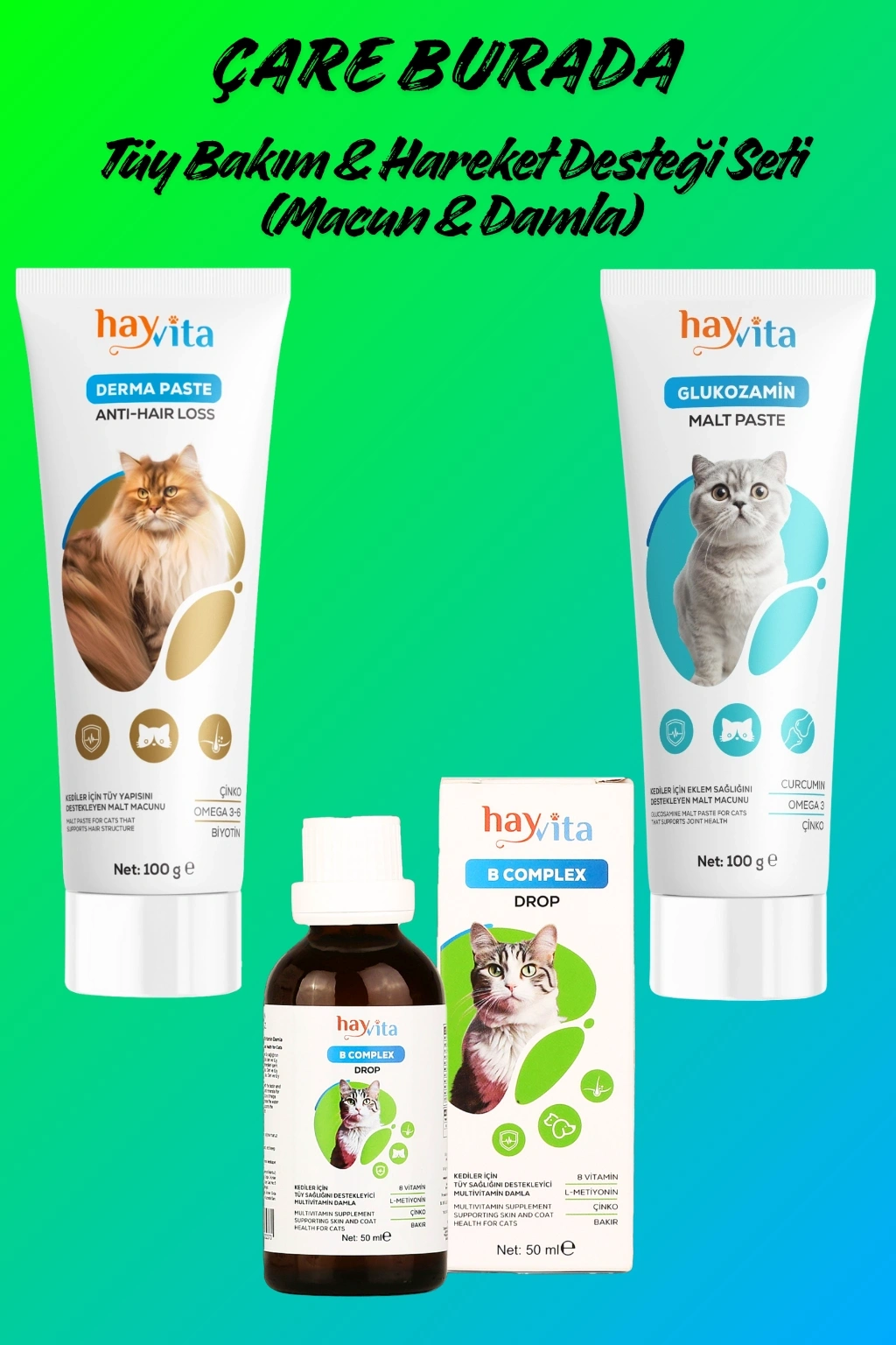 Tüy Bakım & Hareket Desteği Seti (B Complex Drop, Anti-Hair Loss & Glukozamin Macun)