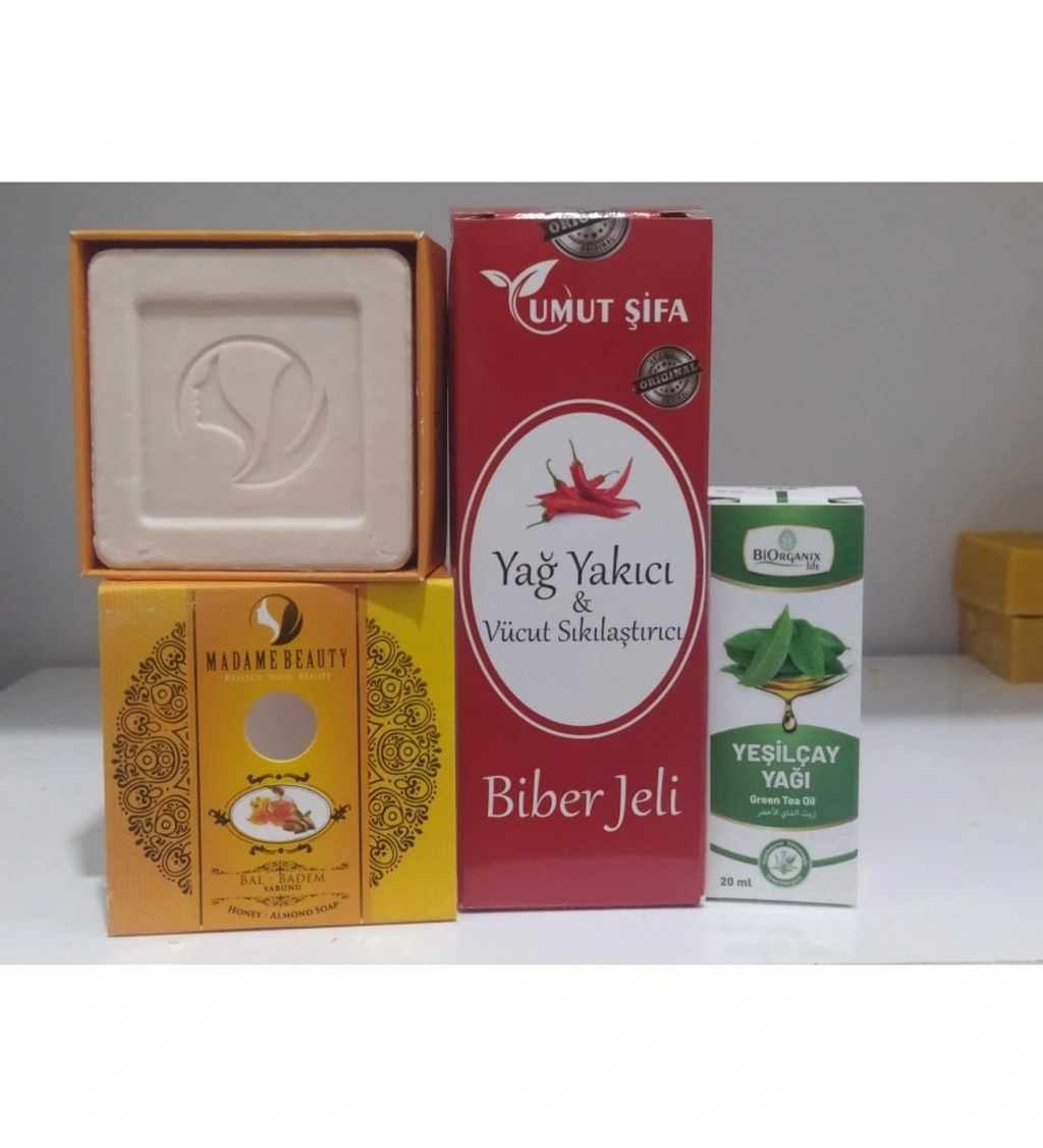 Yağ Yakıcı & Vücut Sıkılaştırıcı jel+ Bal-Badem Sabun + Yeşilçay Yağı